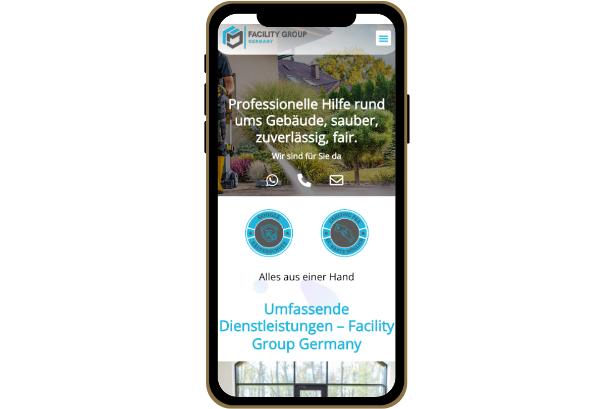 Für die Facility Group Germany haben wir eine vielseitige digitale Präsenz realisiert, die modernes Webdesign, Funktionalität und Benutzerfreundlichkeit miteinander kombiniert. Die mobiloptimierte und zeitgemäße Website überzeugt durch ihr responsives Design, das auf allen Endgeräten eine optimale Darstellung und Nutzung sicherstellt.